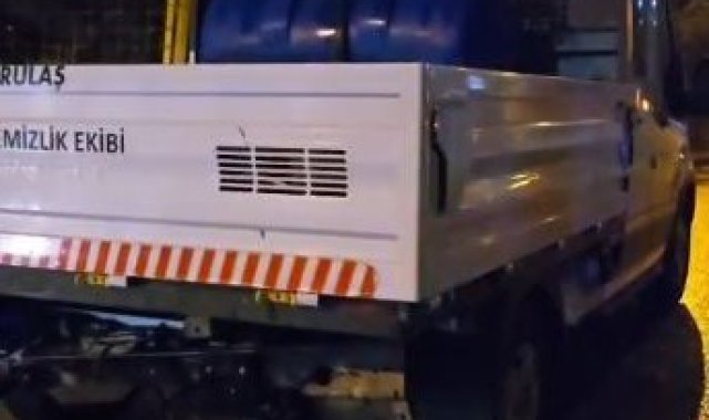 Temizlik aracına çarpan otomobil hurdaya döndü