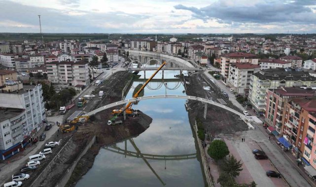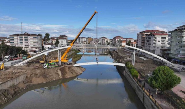 Terme'de yaya köprüsünün montajına başladı