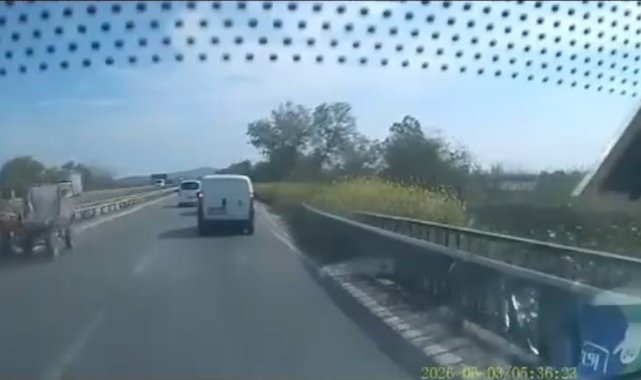 Bursa İzmir karayolu Karacabey ilçesi yakınlarında Bursa yönüne seyir halinde olan sürücüler tehlike dolu anlar yaşadı. Ters yönden, sol şeridi kullanarak ilerleyen bir at arabası kazaya davetiye çıkardı.Olay, Karacabey ilçesine bağlı Ulubat mevkiinde trafikte ilerleyen bir aracın güvenlik kamerasına saniye saniye yansıdı. Görüntülerde, karşı yönden gelmesi gereken şeritte aniden beliren at arabasının, sürücülere zor anlar yaşattığı görüldü.Sürücüler, karşılarına çıkan at arabası nedeniyle ani manevralar yapmak zorunda kalırken, muhtemel bir facianın eşiğinden dönüldü. Şans eseri herhangi bir kaza yaşanmazken, yaşanan tehlike trafikte kural ihlallerinin ne denli ciddi sonuçlar doğurabileceğini bir kez daha gözler önüne serdi.Yetkililerin, özellikle kırsal bölgelerde benzer olayların önüne geçilmesi adına denetimlerini artırması bekleniyor.