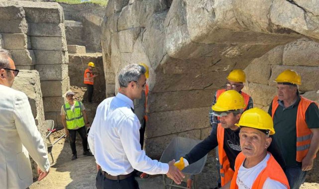 Zonguldak'ın Çaycuma İlçe Kaymakamı Adem Kaya, Batı Karadeniz'in önemli arkeolojik alanlarından biri olan Filyos beldesindeki Tios Antik Kenti'nde devam eden kazı çalışmalarını yerinde inceledi. Ziyaret sırasında Kaymakam Kaya'ya, kazıların başında bulunan Bartın Üniversitesi (BARÜ) Kazı Başkanı Prof. Dr. Şahin Yıldırım eşlik etti.M.Ö. 7. yüzyılda kurulduğu bilinen ve yaklaşık 5 bin kişilik kapasiteye sahip olan Tios Amfi Tiyatrosu, arkeologlar tarafından titizlikle gün yüzüne çıkarılıyor. Yapının orijinal dokusuna sadık kalınarak yürütülen kazılar, antik dönemin mimari estetiğini yeniden ortaya koymayı hedefliyor.İncelemeler sırasında Prof. Dr. Şahin Yıldırım, Kaymakam Kaya'ya kazı sürecine ilişkin teknik bilgiler vererek, antik tiyatronun tarihi önemi ve restorasyon süreci hakkında ayrıntılı sunumda bulundu.Kaymakam Adem Kaya, inceleme sonrası yaptığı açıklamada, Tios Amfi Tiyatrosu'nun tamamlandığında bölge turizmi açısından büyük bir potansiyele sahip olduğunu belirtti. Kaya, "Bu tür tarihi yapılar yalnızca geçmişi günümüze taşımakla kalmaz, aynı zamanda ekonomik ve kültürel anlamda da bölgeye canlılık kazandırır. Çalışmaları yakından takip etmeye ve desteklemeye devam edeceğiz" dedi.