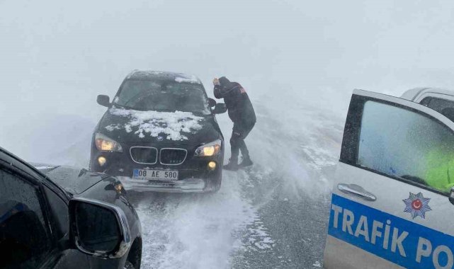 Ardahan-Şavşat karayolunun 2 bin 500 rakımlı Sahara geçidinde tipiden yolda kalan 13 araç için ekipler seferber oldu.