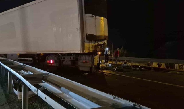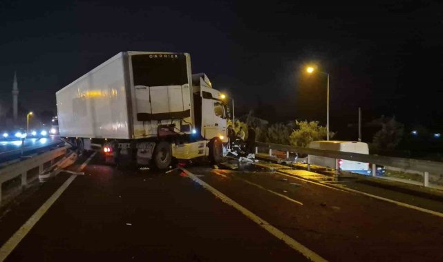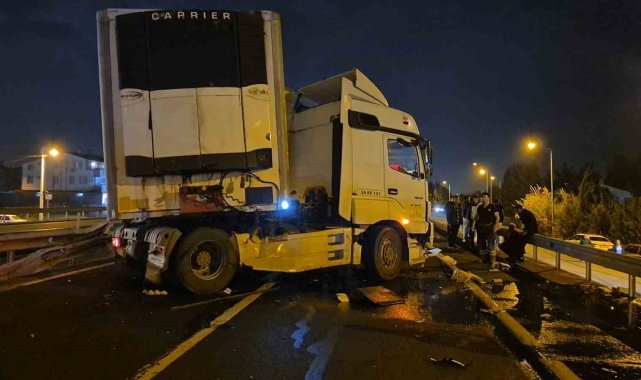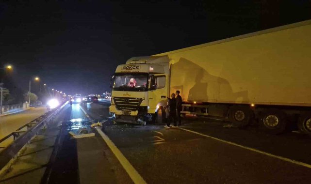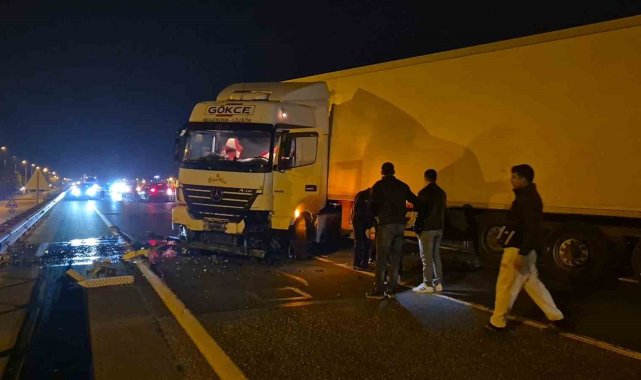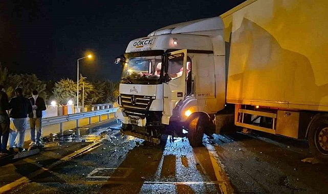 Tekirdağ-İstanbul yolunda meydana gelen kazada kontrolden çıkan tır bariyerlere çarptı. Kaza nedeniyle yol kapanırken, trafik yan yoldan kontrollü olarak sağlandı.