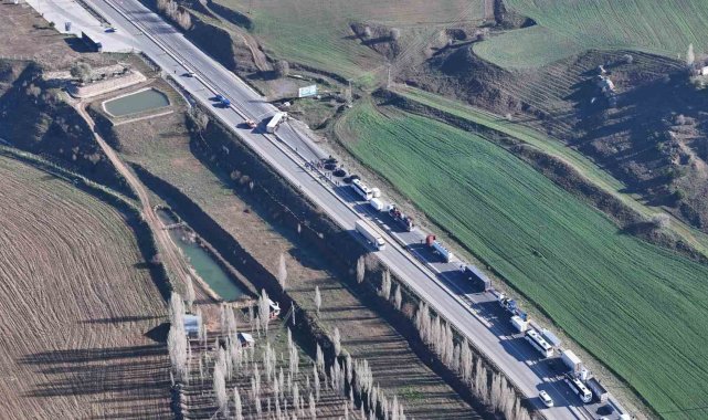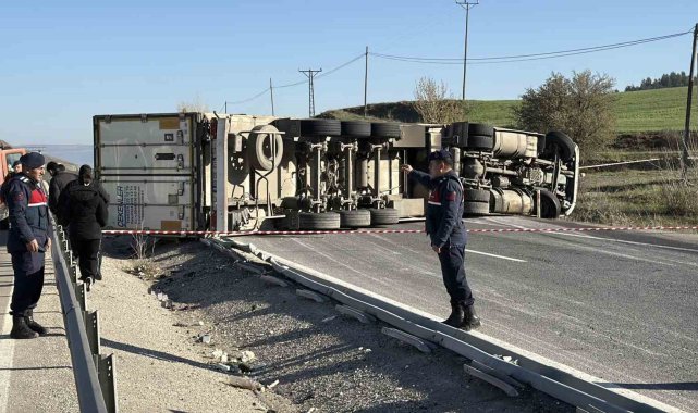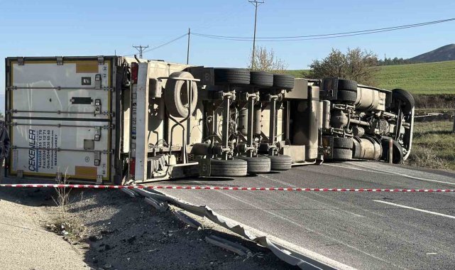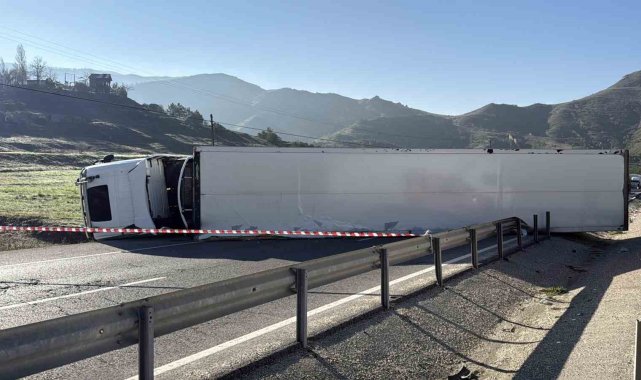 Sivas'ta bir tır devrilerek yolu kapattı. Kapanan yolda yüzlerce araç yolda kaldı.Edinilen bilgilere göre kaza, Kayseri-Sivas kara yolu Taşlıdere mevkiinde meydana geldi. 33 CKN 45 plakalı tır, sürücüsünün kontrolünü kaybetmesi sonucu bariyerlere çarparak Mescitli köyü yakınlarında devrildi. Tırın devrilmesi sonucu yol trafiğe kapandı. Kazayı görenlerin ihbarı üzerine olay yerine sağlık, polis ve jandarma ekipleri sevk edildi. Kaza sonrası hafif yaralanan sürücü, ambulansla hastaneye kaldırıldı. Trafiğe kapanan Sivas istikametinde uzun araç kuyruğu oluştu. Kayseri-Sivas kara yolunda oluşan araç trafiği, dron ile görüntülendi. Yolda kalan araçlar, ekiplerin çalışması sonrası tahliye edildi. Kazayla ilgili inceleme başlatıldı.