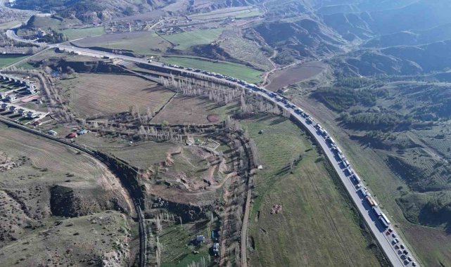 Tır devrildi, Kayseri-Sivas yolunda uzun araç kuyruğu oluştu