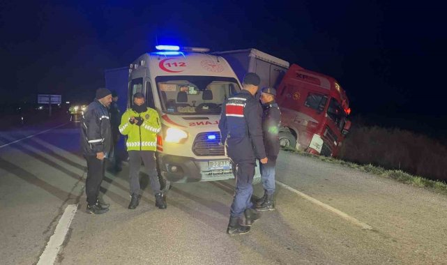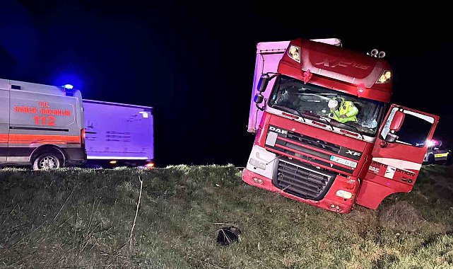 Edirne Hamzabeyli Sınır Kapısı yolunda kontrolden çıkan tır, şarampolün eşiğinde durarak devrilmekten son anda kurtuldu.