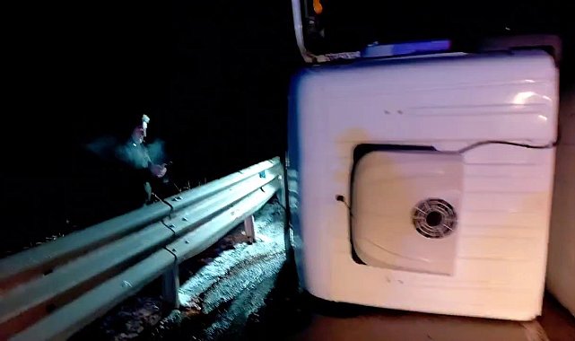 Tır yan yattı, yol trafiğe kapandı: 1 yaralı