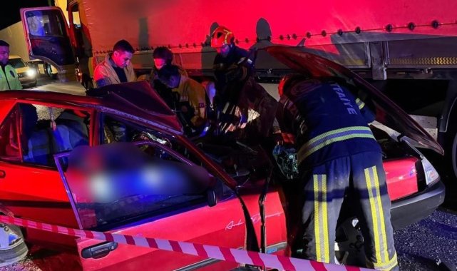 Tıra yandan çarpan otomobilde 1 kişi öldü, 1 kişi ağır yaralandı