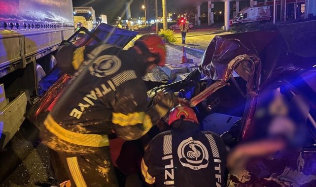 Denizli'de tıra yandan çarpan otomobilin sürücüsü olan 20 yaşındaki genç öldü, 1 kişi ağır yaralandı.