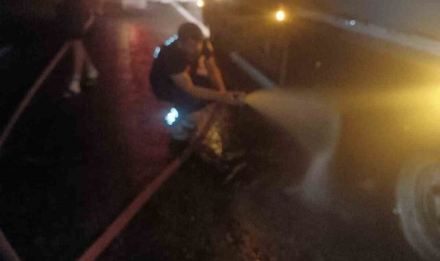 Tırda çıkan yangına itfaiyeden seyir halindeyken müdahale