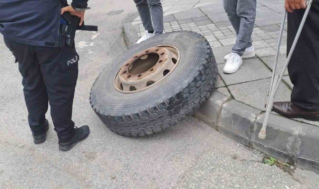 Tırdan fırlayan lastik az kalsın dehşet saçıyordu