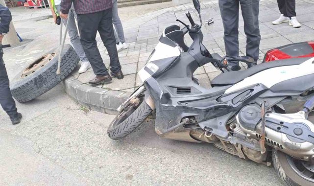 Trabzon'da seyir halinde giden bir tırdan aniden çıkan lastik yol kenarında bulunan motosiklete çarptı. Yaşanan olay güvenlik kameralarına saniye saniye yansıdı.Edinilen bilgiye göre, Araklı ilçesinin Trabzon Caddesinde seyir halinde giden 61 AFH 765 plakalı tırdan fırlayan lastik yol kenarında bulunan 06 DSZ 50 plakalı motosiklete çarparak savurdu. Motosiklet sürücüsü, tam aracına bineceği esnada gelen tehlikeden son anda kurtuldu. Olay güvenlik kameralarına saniye saniye yansıdı. Lastiğin geliş şiddetiyle yoldan savrulan motor sürücüsü hafif yaralanırken, olay yerine gelen 112 Acil Yardım ekipleri tarafından hastaneye sevk edildi. Fırlayan lastiğin yolda veya kaldırımda bulunan bir başka kişiye çarpmaması ise sevindirdi.Emniyet ekipleri olayla ilgili soruşturma başlattı.