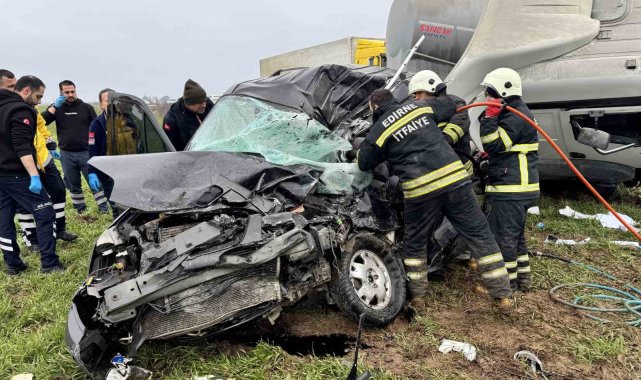 Edirne-Lalapaşa karayolunda kontrolden çıkarak karşı şeride geçen tırın otomobille çarpışması sonucu meydana gelen kazada, 70 yaşındaki otomobil sürücüsü hayatını kaybetti.Kaza, Edirne'den Lalapaşa istikametine seyir halinde olan 27 yaşındaki F.A. idaresindeki 27 BDZ 531 plakalı tırın, sürücüsünün direksiyon hakimiyetini kaybederek şerit ihlali yapması sonucu meydana geldi. Karşı şeride geçen dev araç, Lalapaşa'dan Edirne yönüne giden 70 yaşındaki Mahmut Oyan yönetimindeki 22 AC 615 plakalı otomobili adeta biçti.Çarpışmanın şiddetiyle hurdaya dönen otomobilde sıkışan Mahmut Oyan için adeta can pazarı yaşandı. Olay yerine sevk edilen Edirne İtfaiyesi ekipleri, ağır yaralı sürücüyü sıkıştığı yerden çıkarmak için zamanla yarıştı. Uzun uğraşlar sonucu araçtan çıkarılan Oyan, sağlık ekiplerince hastaneye kaldırıldı.Hastanede doktorların yoğun çabasına rağmen 70 yaşındaki Mahmut Oyan kurtarılamayarak hayatını kaybetti. Kazayı hafif sıyrıklarla atlatan tır sürücüsü F.A. ise ambulansla kontrol amaçlı hastaneye sevk edildi.Jandarma ekipleri, kazayla ilgili geniş çaplı inceleme başlatırken, yol bir süre trafiğe kapatıldı.
