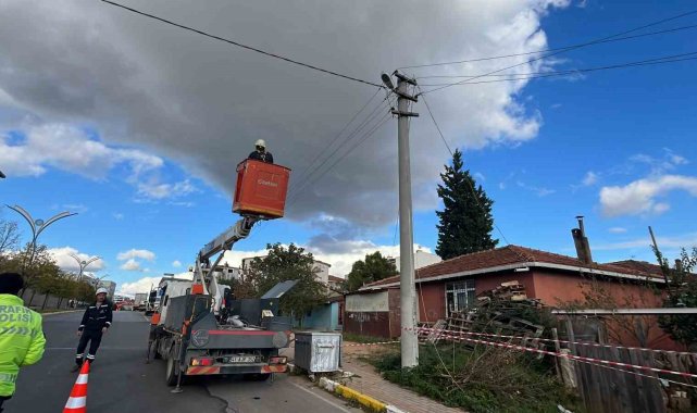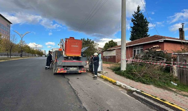 Kocaeli'nin Gebze ilçesinde tırın çarptığı elektrik direği devirildi. Kazada yaralanan olmazken bölgede elektrik kesildi.