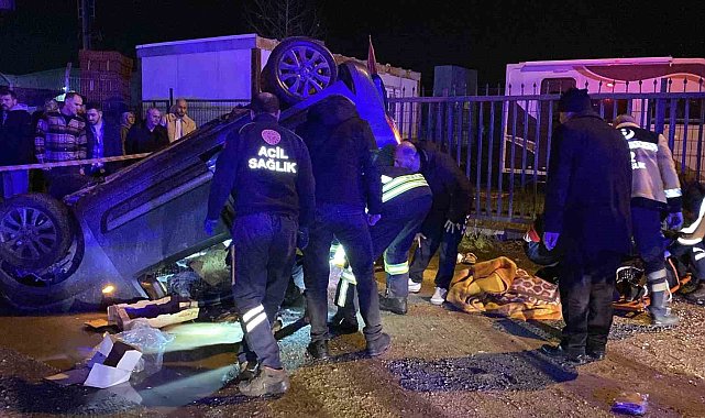 Tırın çarptığı hafif ticari araç metrelerce sürüklenerek takla attı: 3 yaralı