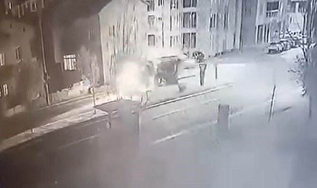 Sivas'ta rulo sac yüklü tırın virajı alamayarak devrildiği kazanın güvenlik kamerası görüntüleri ortaya çıktı.Edinilen bilgilere göre kaza, dün Kılavuz Mahallesi Şehit Hamit Kandur Caddesi üzerinde meydana geldi. S.A. (36) idaresindeki 58 AER 652 plakalı tır, taşıdığı yükün ağırlığıyla virajı alamayarak devrildi. Devrilen tır 3 katlı bir binanın bahçe duvarını yıktı. Kazada araç içerisinde sıkışan sürücü itfaiye ekiplerince kurtarıldı. Yaralanan sürücü tedavi altına alınırken kazanın güvenlik kamerası görüntüleri ortaya çıktı. Tırın virajı alamayarak devrildiği anlar saniye saniye güvenlik kamerasına yansıdı.