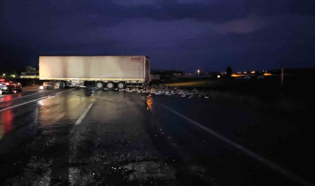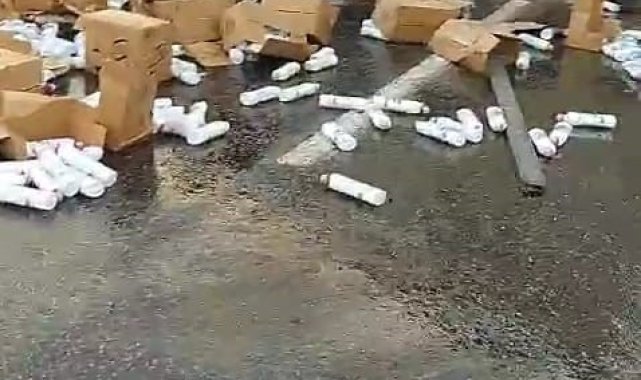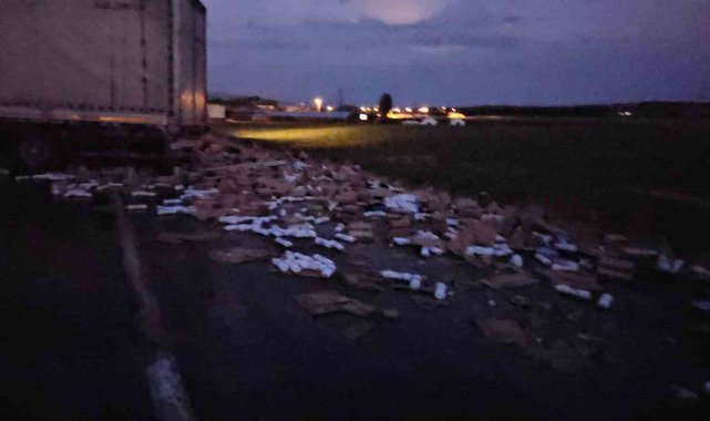 Tırın dorsesi kaydı, kozmetik ürünler yola saçıldı