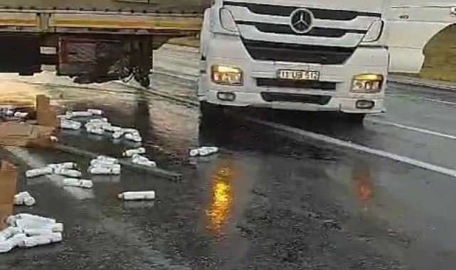 Bitlis'in Adilcevaz ilçesinde kozmetik yüklü tırın dorsesinin kayması sonucu içerisinde bulunan ürünler yola saçıldı.Edinilen bilgiye göre kaza, Adilcevaz-Erciş karayolunun 30. Kilometresinde meydana geldi. Mehmet Ali K. yönetimindeki 11 UB 512 plakalı kozmetik ürün yüklü tır, Mersin'den Özbekistan'a seyir halinde iken yağan yağmurundan dolayı kayganlaşan yolda dorsesi kaydı. Tırdaki kozmetik ürünler yola saçıldı. Bölgeye polis ekipleri sevk edildi. Trafik ekipleri, başka bir kazaya sebebiyet verilmemesi için yolda geniş önlem alırken, bölgeye gümrük memurları çağrıldı. Yola saçılan kozmetik ürünleri kaza yerine gönderilen başka bir tıra yüklendi. Yükünü alan tır Özbekistan'a doğru tekrar yola devam etti.Tır şoförü Mehmet Ali K., yolda mazot veya başka bir madde olduğunu iddia ederek tırın birden kaydığı bir daha toparlayamadığı söyledi.