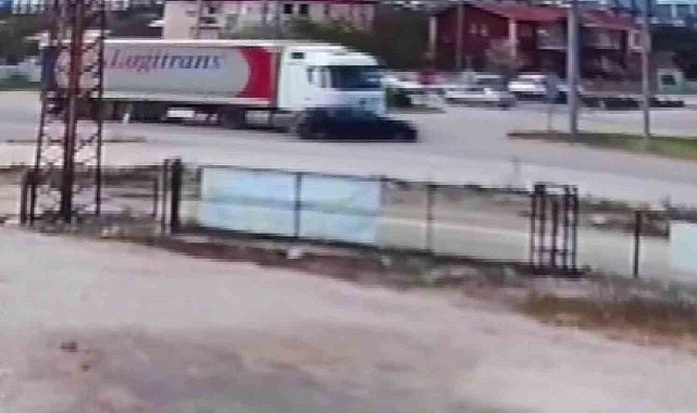 Tırın otomobili önüne katıp sürüklediği kaza kamerada