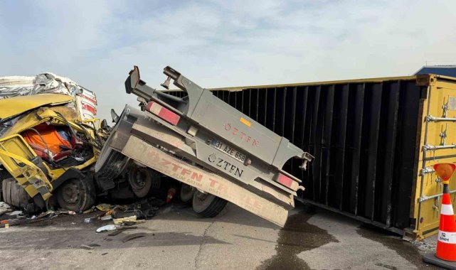 Tırların çarpıştığı feci kaza kamerada