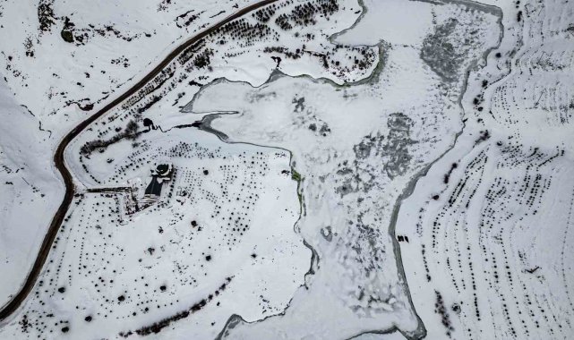 Tokat'ta buz tutan Üçoluk Göleti'nde doğal güzellikler oluştu