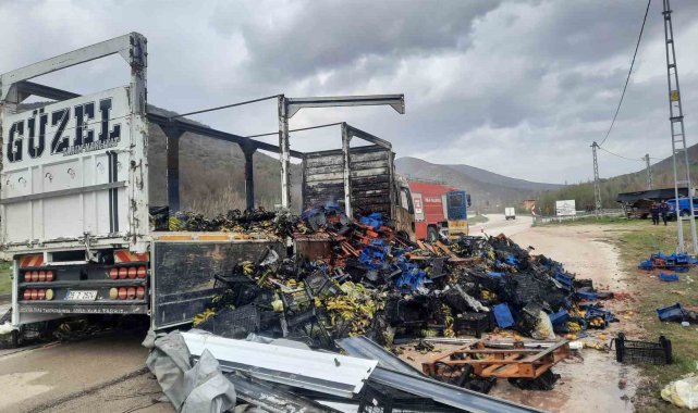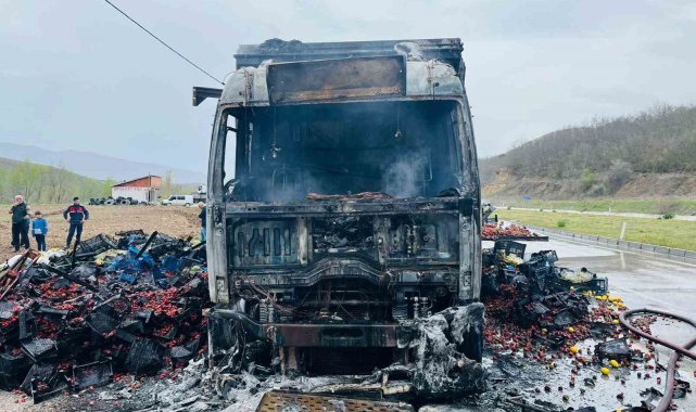 Tokat'ta seyir halindeki çilek yüklü bir kamyon yanarak kullanılamaz hale geldi.Yangın, saat 11.00 sıralarında merkeze bağlı Gökdere Köyü kavşağında meydana geldi. Edinilen bilgilere göre Tokat istikametinden Niksar yönüne seyir halinde olan M.D. (32) idaresindeki 35 Z 2524 plakalı kamyonda lastik patlaması sonucu yangın çıktı. Kısa sürede büyüyen alevler aracı sararken, çevredeki vatandaşların ihbarı üzerine olay yerine Tokat Belediyesi itfaiye ekipleri sevk edildi. İtfaiye ekiplerinin hızlı müdahalesiyle yangın kontrol altına alınarak söndürüldü. Olayda herhangi bir can kaybı ya da yaralanma yaşanmazken, araçta maddi hasar meydana geldi. Yangınla ilgili inceleme başlatıldı.