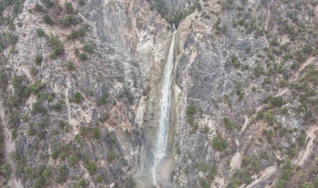 Tokat'ın Reşadiye ilçesinde geçen yıl susuz kalan Su Uçuran Şelalesi, son yağışların ardından yeniden akmaya başladı.Reşadiye ilçesi Çakmak köyü yakınlarında bulunan ve görüntüsü ile mest eden Su Uçuran Şelalesi, geçtiğimiz aylarda sıcak hava ve bilinçsiz sulama nedeniyle tamamen kurumuştu. 2025 yılı Temmuz ayında susuz kalan şelale, bölge halkını endişelendirmişti. Son günlerde etkili olan yağmurlar ve yüksek kesimlerde karların erimesiyle birlikte şelale yeniden canlandı. Daha önce kurumuş haliyle görüntülenen Su Uçuran Şelalesi'nin yeniden akmaya başlaması hem yöre halkını hem de bölgeden geçen vatandaşları sevindirdi.Şelalenin eski görüntüsüne kavuşmaya başladığını belirten Süleyman Yaprak, "Su Uçuran Şelalesi kurumuştu. Son günlerde yağışlardan dolayı şelalemiz eski görüntüsüne kavuştu. Bu durumdan biz de çok mutluyuz" dedi.