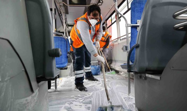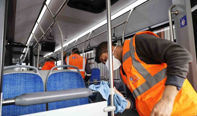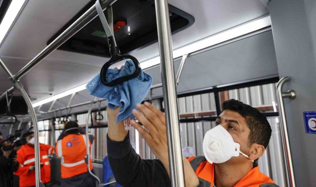 Ulaşım A.Ş. Operasyon Birimler Sorumlusu Ramazan Delioğlu, toplu taşıma araçlarının her gün detaylı şekilde temizlendiğini belirterek, "Seferini tamamlayan araçlarımızın temizliği her gün titizlikle gerçekleştiriliyor. Yolcularımızın temas ettiği tüm yüzeyler düzenli olarak dezenfekte ediliyor. Koltuklar, tutacaklar ve zeminler özel temizlik ürünleriyle ayrıntılı biçimde temizleniyor. Hijyen standartlarımızı yüksek tutuyoruz. Çünkü halkımızın sağlığı bizim için büyük önem taşıyor. Toplu taşıma ortak kullanım alanıdır. Biz üzerimize düşeni yaparken vatandaşlarımızdan da bu temizliğin korunması konusunda duyarlılık bekliyoruz" dedi.