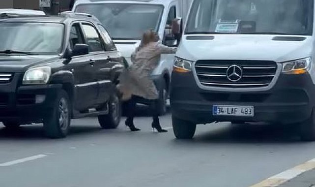 İstanbul Esenyurt'ta trafikte yaşanan sözlü tartışma kısa süreli gerginliğe yol açtı. Bir kadın sürücünün aracından inerek servis aracındaki kişilere saldırdığı anlar cep telefonu kamerasıyla kaydedildi.