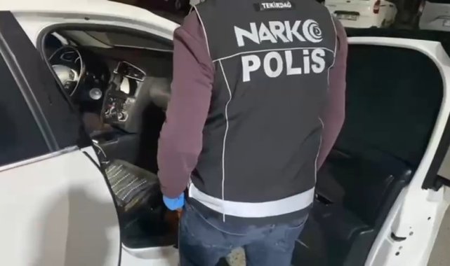 Tekirdağ'da polis ekiplerinin 11 ilçede eş zamanlı düzenlediği narkotik operasyonlarında aracın bagajında büyük boy çöp torbası içinde uyuşturucu bulunan araçtan yüklü miktarda madde ve hap ele geçirildi.