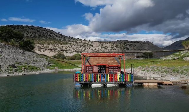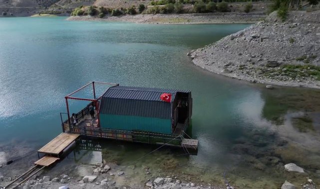 Erzurum'un Uzundere ilçesinde hayata geçirilen "yüzen ev" projesi, bölgenin yeni turizm cazibe merkezlerinden biri olmaya aday.Uzun yıllardır Tortum Gölü kıyısında atıl durumda bulunan proje, genç girişimci Esra Tosun ve eşi Derviş Tosun tarafından yeniden hayata geçirildi. Tamamlanan yüzen ev, göl üzerinde hareket edebilen ve tekneyle çekilebilen yapısıyla dikkat çekiyor. Modern tasarımıyla öne çıkan ev, kafe ve organizasyon alanı olarak kullanılmak üzere yeniden düzenlendi. 2026 turizm sezonuna hazırlanan proje, bölgeye gelen ziyaretçilerden büyük ilgi görüyor. Yüzen ev, hem doğayla iç içe huzurlu bir ortam sunarken hem de Uzundere'nin turizm potansiyeline yeni bir soluk kazandırıyor.Esra Tosun, projeyle ilgili yaptığı açıklamada, "Tortum Gölü'nün eşsiz güzelliğini insanların daha yakından deneyimlemesini istedik. Bu ev hem bizim hayalimizdi hem de bölgemiz için yeni bir turizm değeri olacak" dedi.
