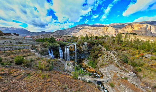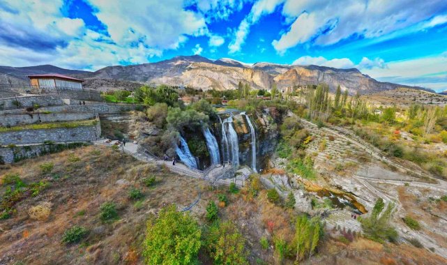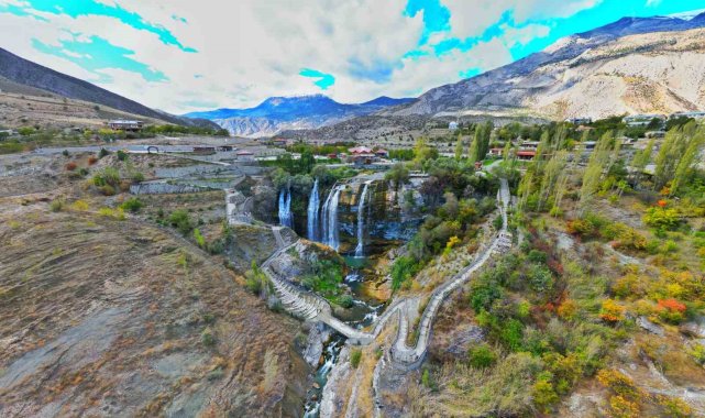 Erzurum'un önemli turizm ve doğal güzelliklerinden biri olan Tortum Şelalesi, sonbahar birlikte gelen rengarenk cümbüşüyle ziyaretçilerini bir kez daha kendisine hayran bıraktı.