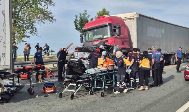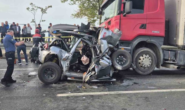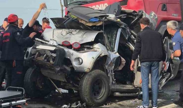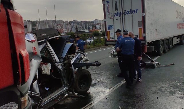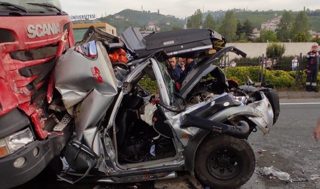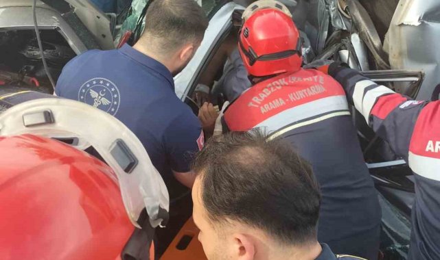 Trabzon'da iki tır arasına sıkışan araç hurdaya döndü: 3 yaralı