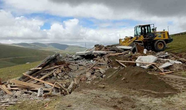 Trabzon'un Maçka ilçesinde mahalle ve yaylalarda izinsiz olarak yapılan kaçak yapılar yıkılıyor.
