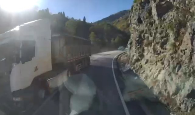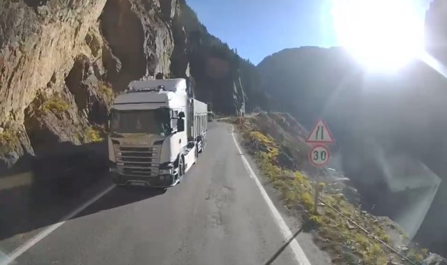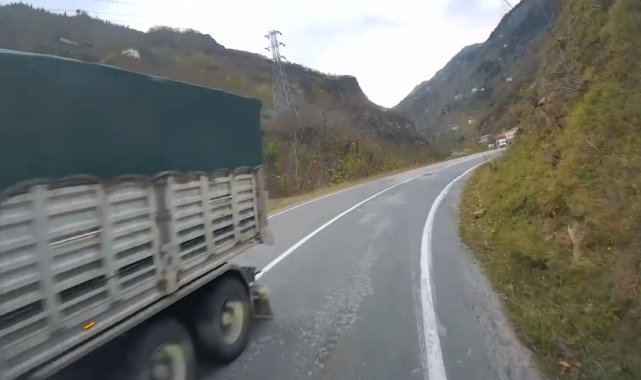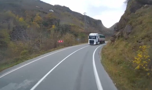 Trabzon'un Araklı ilçesinde kazaya davetiye çıkartan Araklı-Bayburt yolu ile Karadeniz sahil yolundaki sürücünün tehlikeli sürüş anları araç kameralarına yansıdı.Trabzon-Araklı-Bayburt yolu her gün yeni bir tehlikeyle gündeme geliyor. Ağır tonajlı araçların denetim azlığı nedeniyle bu güzergâhı tercih etmesi, riski daha da artırıyor. Rampalardan hızla inen tırlar, özellikle keskin virajlarda şerit ihlali yaparak karşı yönden gelen araçlar için büyük tehlike oluşturuyor. Son olarak kazaya ramak kala yaşanan bir an, bir aracın kamerasına yansıyarak tehlikeyi gözler önüne serdi.Yine Araklı'da, bu kez ilçenin Karadeniz Sahil Yolu geçişinde bir otomobil sürücüsünün kamyon sürücüsüne yaşattığı zor anlar araç kameralarına yansıdı.