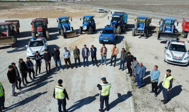 Aksaray'da trafik jandarması ekiplerince köylerde tarımla uğraşan ve traktörü bulunan üreticilere eğitim verildi.
