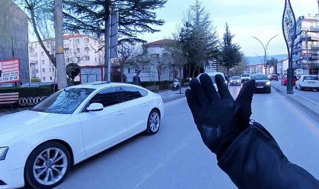 Bolu'da aniden yola çıkarak motosikletliyi tehlikeye atan ve ardından "Hatalı sollama yaptın" diyerek polise şikayette bulunan otomobil sürücüsünün haksız olduğu, kask kamerası görüntüleriyle ortaya çıktı. Görüntüleri izleyen sürücü hatasını kabul etmek zorunda kaldı.Edinilen bilgiye göre, Tabaklar Mahallesi Ali Rıza Tekemen Caddesi'nden Valilik istikametine seyreden Serhan Korul idaresindeki motosiklet, bağlantı yolundan ana yola kontrolsüz çıkan otomobil ile çarpışmaktan son anda manevra yaparak kurtuldu. Olayın ardından Korul'un tepki gösterdiği otomobil sürücüsü, "Hatalı sollama yaptın" diyerek karşılık verdi. Kısa süreli tartışma sonrası yollarına devam eden taraflardan otomobil sürücüsü, Valilik kavşağında görevli trafik polislerinin yanına giderek motosiklet sürücüsünden şikayetçi oldu.Bunun üzerine polis ekipleri tarafından durdurulan motosiklet sürücüsü Korul, seyir halindeyken kayıtta olan kask kamerasının görüntülerini ekiplere izletti. Görüntülerin incelenmesi sonucu motosikletlinin kurallara uygun seyrettiği, otomobilin ise yola kontrolsüz çıktığı belirlendi. Kamera kayıtlarını izledikten sonra hatasını anlayan otomobil sürücüsü durumu kabul etti. Harhangi bir cezai işlem uygulanmadı.Öte yandan, kaza tehlikesinin yaşandığı anlar ile sonrasında polis noktasında yaşananlar motosiklet sürücüsünün kask kamerasınca saniye saniye kaydedildi.