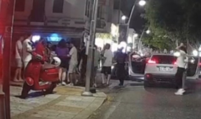 Muğla'nın Bodrum ilçesinde 2 kişi arasındaki yol verme tartışması tekmeli yumruklu kavgaya dönüştü. Taraftarları çevredeki vatandaşlar ayırdı. Kavga anı araç kamerasına yansıdı.
