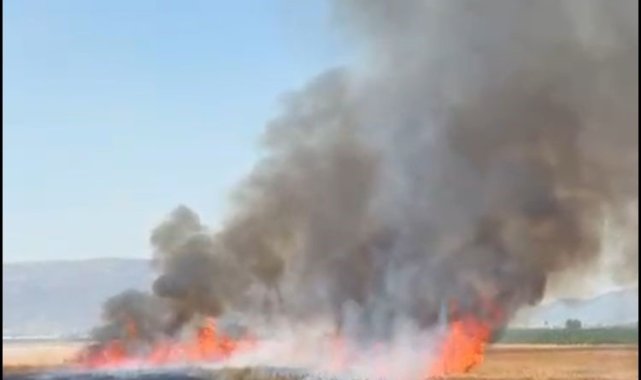 Burdur'un Karamanlı ilçesinde traktör kepçesinin elektrik tellerine temas etmesi sonucu kopan kablo, saman yüklü römorkta yangına yol açtı. Yangın kısa sürede çevredeki ekili alanlara sıçrayarak, yaklaşık 50 dönüm arazinin zarar görmesine neden oldu.
