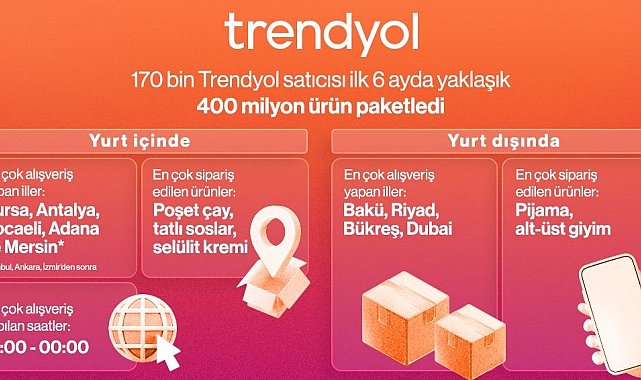 Trendyol, 2025 yılının ilk yarısının Türkiye Alışveriş Haritasını paylaştı. Bu dönemde 170 bin satıcının yaklaşık 400 milyon ürünü, Trendyol aracılığıyla tüketicilerle buluştu.