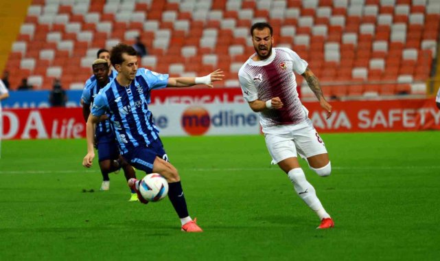 Trendyol Süper Lig'in 36. haftasında Adana Demirspor, evinde Atakaş Hatayspor ile karşılaşıyor. Müsabakanın ilk yarısı konuk ekibin 3-0 üstünlüğüyle tamamlandı.Maçtan dakikalar (İlk yarı)5. dakikada Görkem Sağlam'ın pasında sağ kanatta topla buluşan Boutabba'nın ceza sahasına girdikten sonra yaptığı vuruşta meşin yuvarlak yandan auta çıktı.10. dakikada Bünyamin Balat'ın geri pasında araya giren Boutabba'nın ceza sahası dışından vuruşunda meşin yuvarlak ağlarla buluştu. 0-111. dakikada Alioui'nin çalımlarla sokulduğu ceza sahasına girerken yaptığı vuruşta kaleci Emir Dadük'ün müdahalesinin ardından top direkten oyun alanına döndü.26. dakikada sağ kanatta topla buluşan Boutabba'nın pasında Okoronkwo'nun vuruşunda meşin yuvarlak ağlara gitti. 0-233. dakikada ceza sahasında topla buluşan Okoronkwo, Osman Kaynak'ın müdahalesi sonucu yerde kaldı. Hakem Ömer Faruk Turtay, VAR'da yapılan kontrolün ardından penaltı noktasını gösterdi.38. dakikada penaltıyı kullanan Okoronkwo'nun vuruşunda kaleci Deniz, sağ köşeye giden topu çeldi. Dönen topu Okoronkwo, ağlara gönderdi. 0-3Hakemler: Ömer Faruk Turtay, Kemal Elmas, Emre DoğuAdana Demirspor: Deniz Eren Dönmezer, Abdulsamet Burak, Osman Kaynak, Burhan Ersoy, Arda Okan Kurtulan, Maestro, Tayfun Aydoğan, Ozan Demirbağ, Bünyamin Balat, Alioui, Yusuf BarasiYedekler: Murat Uğur Eser, Vedat Karakuş, Aksel Aktaş, Ali Arda Yıldız, FougeuTeknik Direktör: Mustafa Alper AvcıAtakaş Hatayspor: Emir Dadük, Kliama, Cemali Sertel, Burak Yılmaz, Kerim Alıcı, Massanga, Kamil Ahmet Çörekçi, Fernandes, Boutubba, Görkem Sağlam, OkoronkwoYedekler: Visar Bekaj, Abdulkadir Parmak, Bamgboye, Selimcan Temel, Diack, Baran Sarka, Cengiz Demir, Deniz Aksoy, Yiğit Ali Buz, Ersin AydemirTeknik Direktör: Murat ŞahinGoller: Boutabba (dk. 11), Okoronkwo (dk. 26 ve 38) (Hatayspor)