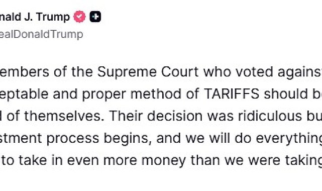 ABD Başkanı Donald Trump, ABD Yüksek Mahkemesi'nin gümrük tarifelerini iptal etme kararı almasının ardından tüm ülkelere yüzde 10'luk küresel gümrük vergisi uygulanmasını öngören bir kararname imzaladığını duyurarak, "Bu vergi neredeyse hemen yürürlüğe girecek" açıklamasında bulundu.ABD Başkanı Donald Trump, ABD Yüksek Mahkemesi'nin gümrük tarifelerini iptal etme kararı almasının ardından vakit kaybetmeden harekete geçti. Trump, kendisine ait Truth sosyal medya platformundan yaptığı açıklamada, tüm ülkelere yüzde 10'luk küresel gümrük vergisi uygulanmasını öngören bir kararname imzaladığını duyurarak, "Bu vergi neredeyse hemen yürürlüğe girecek" ifadelerini kullandı. ABD Yüksek Mahkemesi'nin gümrük tarifelerine karşı oy kullanan üyelerinin kendilerinden utanması gerektiğini savunan Trump, "Kararları gülünçtü, ancak şimdi ayarlama süreci başlıyor ve daha önce kazandığımızdan daha fazla para kazanmak için elimizden gelen her şeyi yapacağız" dedi.ABD Yüksek Mahkemesi Trump'ın gümrük tarifelerini iptal etmiştiABD Yüksek Mahkemesi, Trump'ın diğer ülkelere karşı stratejik bir silah olarak kullandığı ve ticaret savaşlarına neden olan gümrük tarifelerinin iptal edilmesine yönelik kararı 6'ya karşı 3 oyla kabul ederek Trump'ın tarifelerinin yetki aşımı olduğunu açıklamıştı.Trump karara sert tepki göstermiştiTrump, karara sert tepki göstererek, "Bu son derece büyük bir hayal kırıklığı nedeni. Yabancı ülkeler çok mutlular ama size temin ederim ki uzun süre mutlu kalmayacaklar. Bir ülkeyi ortadan kaldırmama izin var ama küçük bir ücret almama izin yok. Ne kadar saçma" açıklamasında bulunmuştu.Trump yeni tarife kararnamesi imzalayacağını açıklamıştıMahkemenin yaptığı şeyin tarifeleri iptal etmek değil, tarifeleri uygulama yollarından birinin önünü kapatmak olduğunu savunan Trump, kendisine tarife uygulama imkanı sağlayan başka yasalar olduğunu söylemişti. Diğer yasaları ve tarife uygulama yetkilerini kullanabileceğine dikkat çeken Trump, mevcut "ulusal güvenlik" tarifelerinin aynen korunacağını ve bütünüyle yürürlükte kalacağını ifade etmişti. Trump, "Bugün ayrıca, halihazırda uygulanmakta olan tarifelere ek olarak, (Ticaret Yasası) 122. madde uyarınca yüzde 10'luk küresel bir tarife getiren bir kararname imzalayacağım" demişti.
