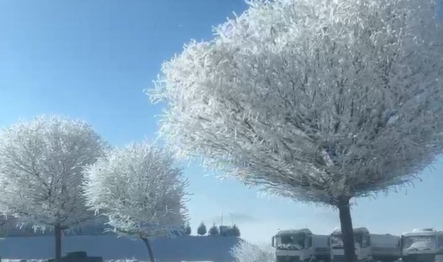 Adana'nın Tufanbeyli ilçesinde hava sıcaklıklarının gece saatlerinde eksi 20 dereceye kadar düşmesiyle birlikte oluşan kırağı; ağaçların, çalıların ve elektrik tellerinin üzerini kaplayarak kartpostallık görüntüler ortaya çıkardı.