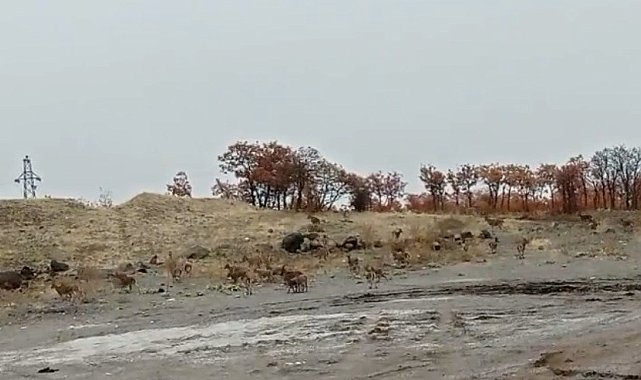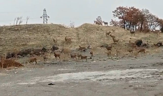 Tunceli'de yaklaşık 50 dağ keçisi yol kenarında yiyecek ararken görüntülendi.