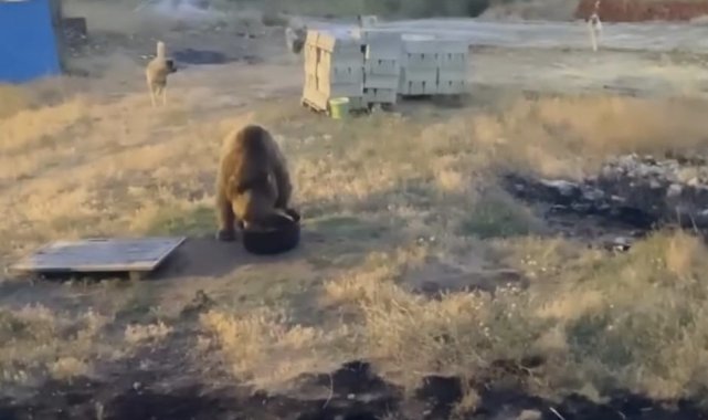 Tunceli'nin Hozat ilçesinde bir bozayı, jandarma karakolunun bahçesine girerek karnını doyurdu.