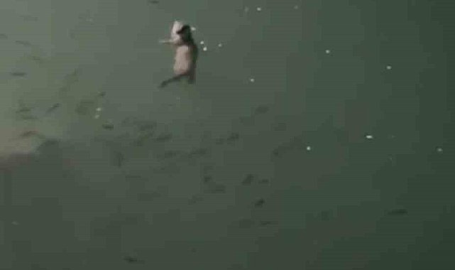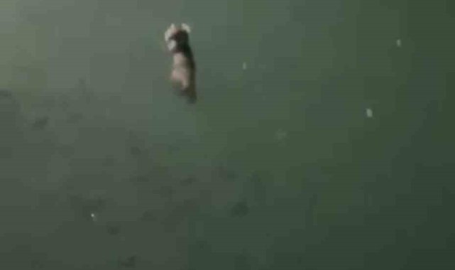 Tunceli'de koruma altında bulunan su samuru, cep telefonu kamerasıyla görüntülendi.
