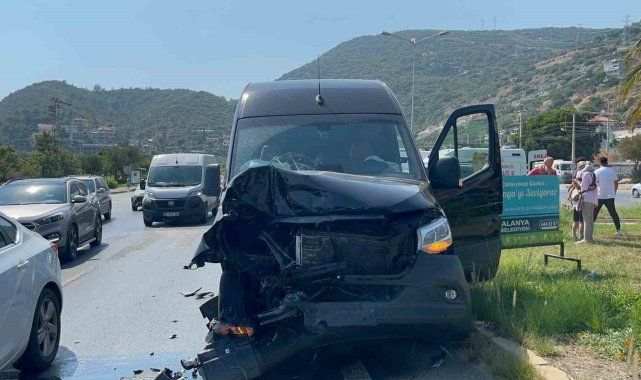 Antalya'nın Alanya ilçesinde tur minibüsü ile hafif ticari aracın çarpışması sonucu meydana gelen kazada 2 kişi yaralandı.