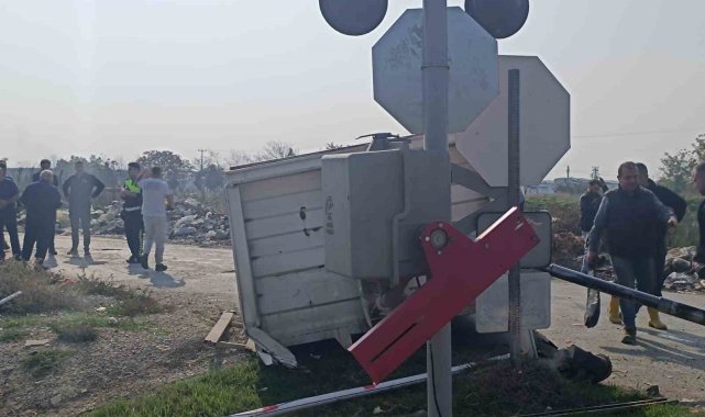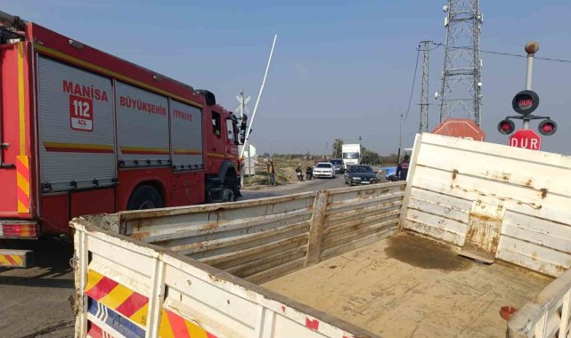 Turgutlu'da hemzemin geçitte kaza: Kamyonetin kasası koptu