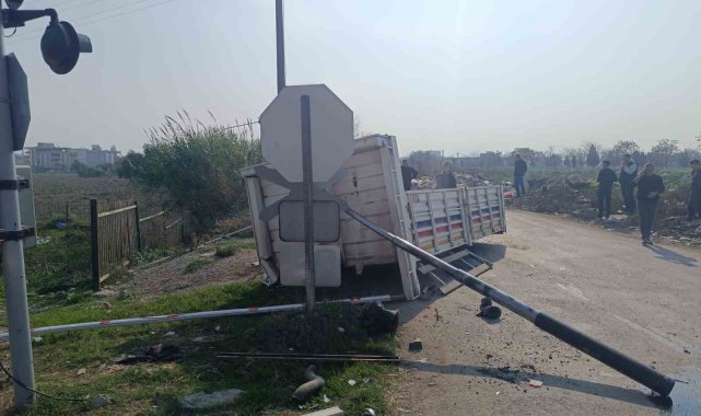 Manisa'nın Turgutlu ilçesinde bariyeri kapanan hemzemin geçitten geçmeye çalışan kamyonete yolcu treni çarptı. Kamyonetin kasasının koptuğu kazada şans eseri ölen yada yaralanan olmadı.