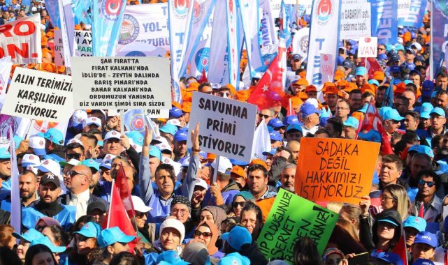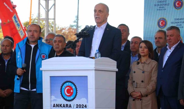 Türkiye İşçi Sendikası Konfederasyonu (Türk-İş) tarafından 'Zordayız, geçinemiyoruz' mitinginde konuşan Türk-İş Genel Başkanı Ergün Atalay, asgari ücret görüşmelerine ilişkin, "Orada asgari ücretli adına 4 tane işçi olacak. Onlar ne karar alıyorsa harfiyen ona uyuyacağız" dedi.Türk-İş tarafından düzenlenen 'Zordayız, geçinemiyoruz' mitingi Ankara'da yapıldı. Türkiye'nin çeşitli illerinden Ankara'ya gelerek mitinge katılan yaklaşık 150 bin işçi, Anadolu Meydanı'nda açtıkları pankartlar ile seslerini duyurmaya çalıştı. Mitingde konuşan Türk-İş Genel Başkanı Ergün Atalay, işçilerin emekli edilmesi halinde sağlık, enerji ve savunma sanayii gibi alanlarda üretim yapılamayacağını söyledi."Görüşmelerde asgari ücretli adına 4 tane işçi olacak, onlar ne karar alıyorsa harfiyen uyacağız"İlerleyen günlerde asgari ücret görüşmelerinin başlayacağını dile getiren Atalay, "Orada asgari ücretli adına 4 tane işçi olacak. Onlar ne karar alıyorsa harfiyen ona uyuyacağız. Geçen seneye geldiler, yazdılar, dediler ki '18 bin lira olsun, yılda 2 kere olsun.' Aynısını ülkeyi yönetenlerin önüne koyduk. 'Yok, biz bu masada olmuyoruz' dediler. Aynısını bu sene de yapacağız. Onlar ne karar alırsa o aldıkları karara harfiyen uyuyacağız" dedi."Biz yük değiliz, enflasyonu biz buralara getirmedik"Türk-İş'in tek derdinin geçim olduğunu sözlerine ekleyen Atalay, "Türk-İş, Türk-İş'in üyeleri, Türk-İş kurulduğu günden bugüne kadar bu sloganı hiç terk etmedi. Ailemizle mükellefiz, geçindirmek mecburiyetindeyiz, geçindirmek mecburiyetindeyiz. Öyle bir noktaya geldik ki bu ücretlerle ayı tamamlamayı bırak 15 gün geçinemiyoruz. Bununla ilgili yeni bir yasal düzenlemeye ihtiyaç var. Emeklinin ihtiyacı var, asgari ücretlinin ihtiyacı var. Biz yük değiliz, enflasyonu biz buralara getirmedik" ifadelerini kullandı."Meclis'e 70 sayfalık metin sunacağız"Önümüzdeki günlerde TBMM'ye vergi sistemiyle ilgili 70 sayfalık bir metin sunacaklarını kaydeden Atalay sözlerini şu şekilde sürdürdü:"Önümüzdeki hafta mecliste bütün vekillere bütün sivil toplum örgütleri için 70 sayfa bir metin hazırladık. Götürüp vereceğiz, arkasından da biz sendikalar, grup başkan vekillerine gideceğiz. Diyeceğiz ki 'bu adaletsiz vergi sistemini değiştirin. Bunu değiştirene kadar alanlarda, sokaklarda bu meseleleri haykırmaya devam edeceğiz.' Bu olmazsa olmaz. En önemli sorunlarınızdan bir tanesi. Buradan başta Maliye Bakanı'na, ülke yönetenlere sesleniyorum. Dikkatli olun, bu alanın sesine kulak verin. Yarın geç olur, treni kaçırırsınız. Enflasyonu düşüreceğim diye bizi düşürmeye hakkınız yok."