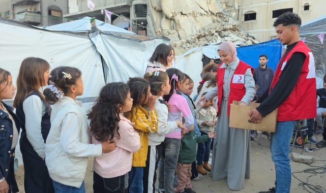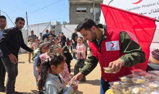 Türk Kızılay tarafından Gazze'de günlük bin çocuğa şekerleme, tatlı ve atıştırmalık ulaştırılıyor.